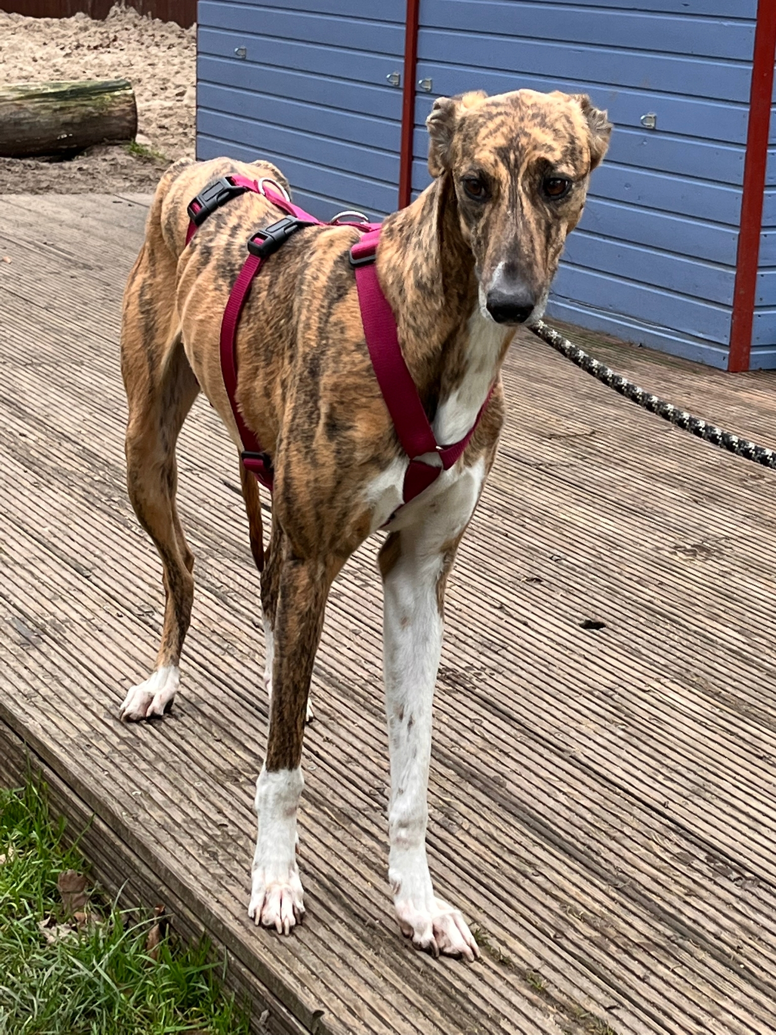 Annie haben wir zusammen mit 4 weiteren Windhunden aus der Smeura übernommen. Über ihre Vorgeschichte wissen wir leider nichts. Nun suchen wir Windhund Liebhaber! Auf Annie trifft die unten genannte Beschreibung sehr gut zu. Nur anfangs ist sie etwas zurückhaltend. Nach einer kurzen Kennenlernphase ist sie äußert entspannt Menschen und anderen Hunden gegenüber. Manchmal vielleicht auch etwas zu ängstlich. Aber kann man ihr das verübeln? Sie liebt es mit ihren Kumpels übers Gelände zu rennen. An der Leine läuft sie sehr gut und zieht überhaupt nicht. Hundebegegnungen werden mit Bravour gemeißtert. Sie fährt entpannt im Auto mit und liebt es spazieren zu gehen. Rassetypisch wird sie definitiv Jagdtrieb haben und sollte deshalb nicht zu Katzen vermittelt werden.