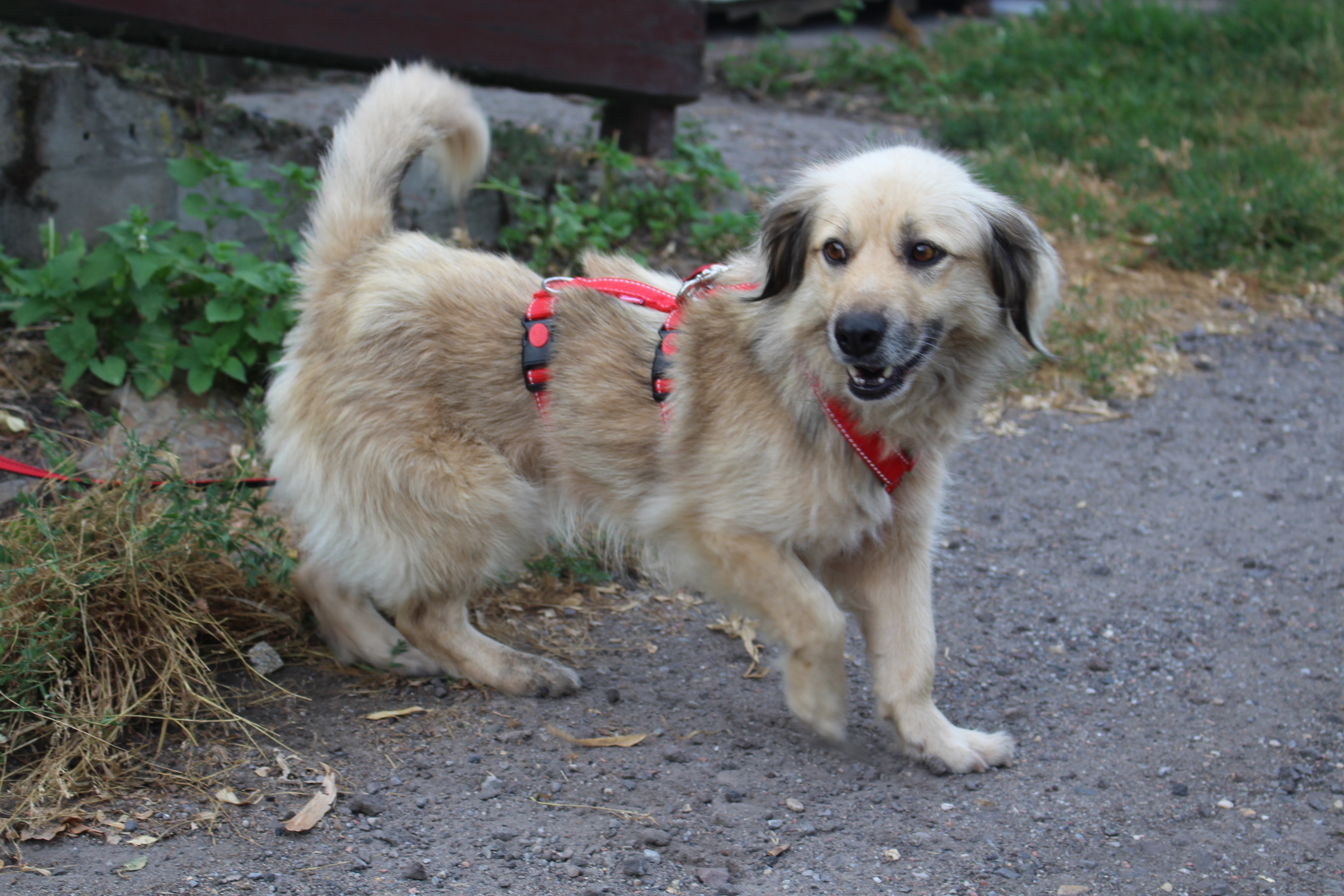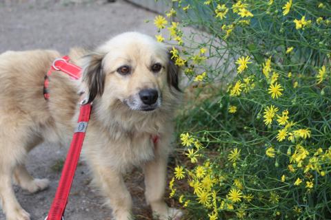 Er freut sich über die Spaziergänge und mußte erst einmal an jeder Blume und an jedem Grashalm schnuppern. Viel zu lange wurde ihm das verwehrt.